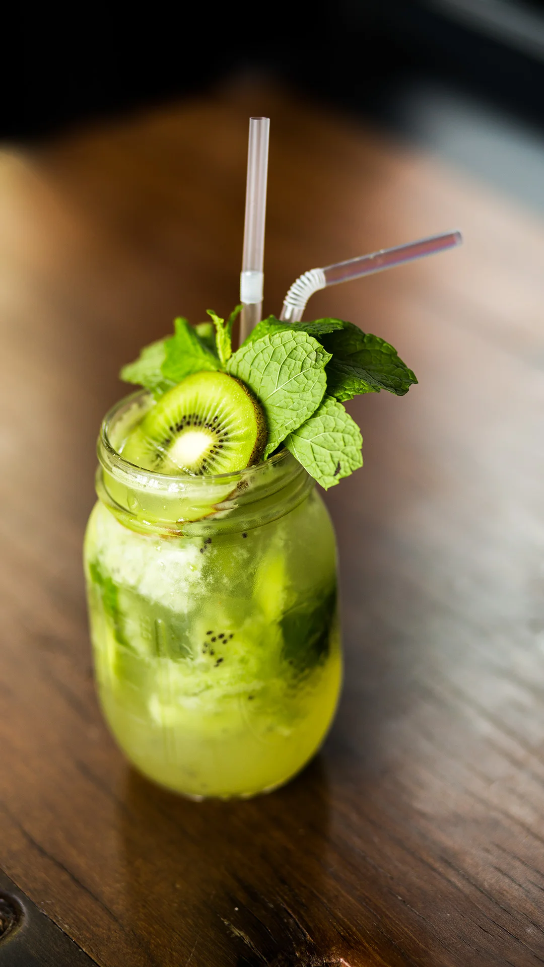 Peel the kiwifruit & muddle in a mason jar, slap & roll mint leaves to release their aroma & add to jar, add other ingredients, fill with ice & top with soda. Swizzle or stir to combine, garnish with fresh mint & a kiwifruit slice.