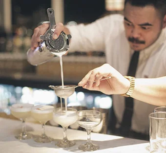 Shake ingredients together and strain into chilled saucer glass. Garnish with a lemon twist. Make simple syrup by combining equal parts water and sugar, heat in saucepan until sugar dissolves. Cool & refrigerate.