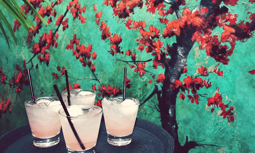 Shake all ingredients with ice, strain into a chilled martini or lowball glass, garnish with a lychee.