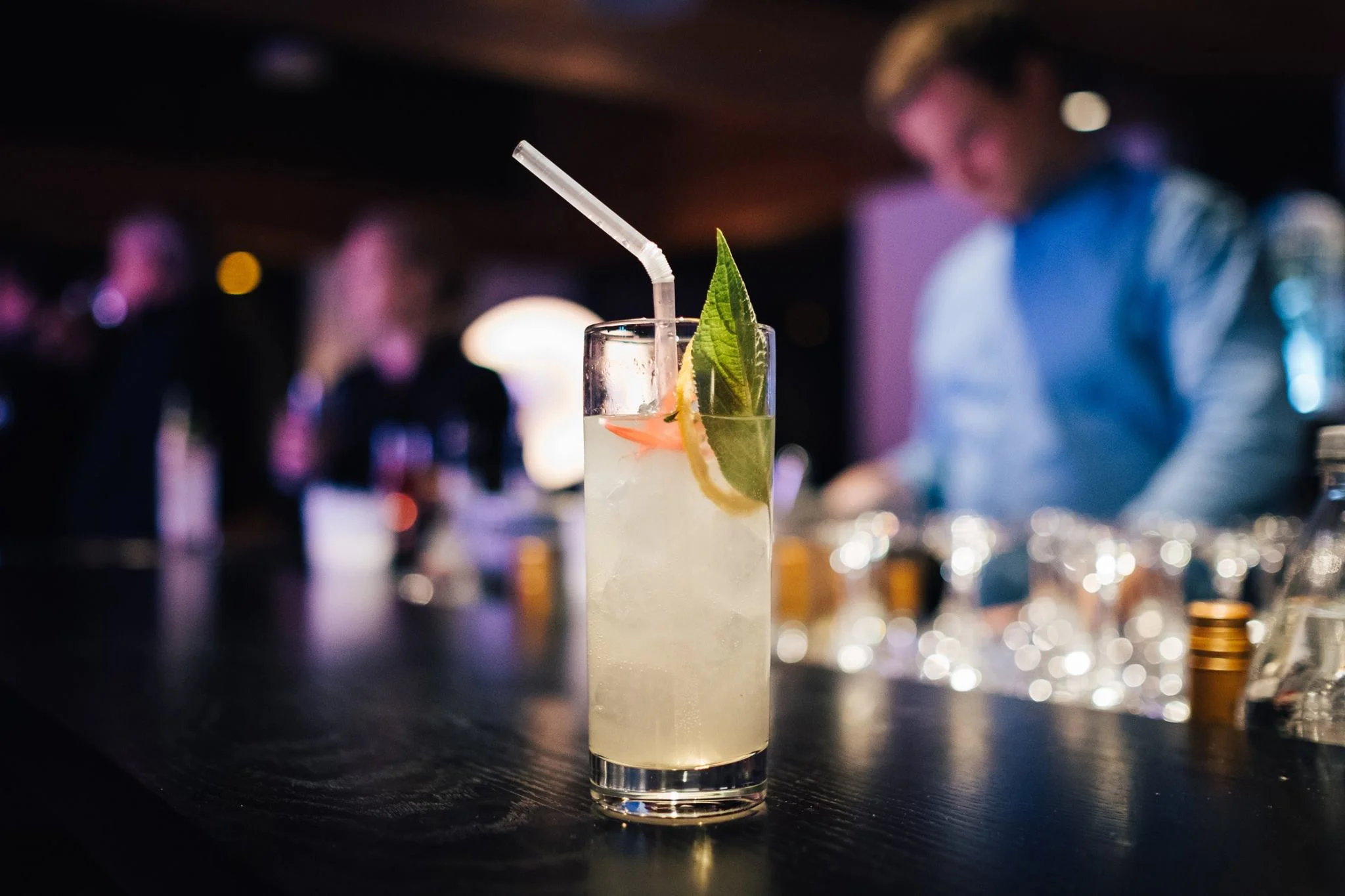 Muddle fresh ginger in a shaker, add remaining ingredients with ice and shake vigorously, double strain into a tall glass. Top with soda and garnish with mint, lemon wheel & edible flowers.